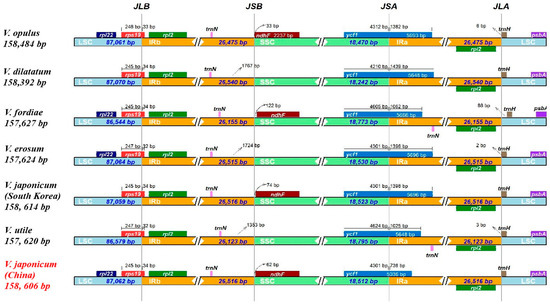 Zhu H, Liu J, Li H, Yue C, Gao M. Complete Chloroplast Genome Structural Characterization and Comparative Analysis of Viburnum japonicum (Adoxaceae). Forests. 2023; 14(9):1819. https://doi.org/10.3390/f14091819