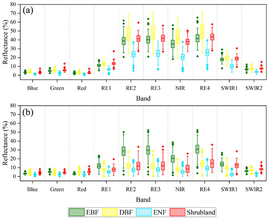 - Shirazinejad, G.; Javad Valadan Zoej, M.; Latifi, H. Applying Multidate Sentinel-2 Data for Forest-Type Classification in Complex Broadleaf Forest Stands. Forestry 2022, 95, 363–379. [Google Scholar] [CrossRef]