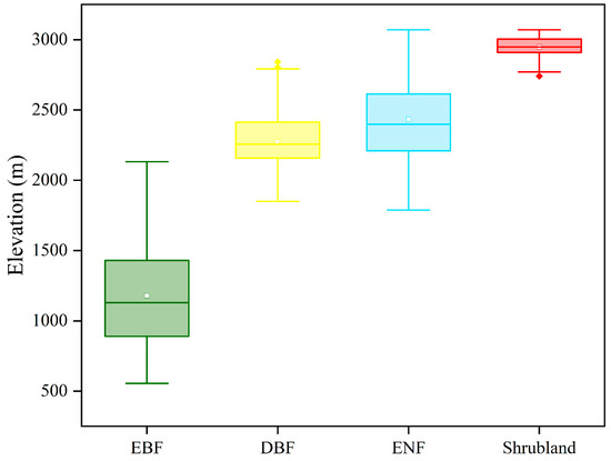 In this study, field investigation data from the Forest Germplasm Resources and Valuable Trees Survey Project on Mount Emei were utilised as the reference data. The data were obtained by our research group through a field investigation between 2019 and 2020. The investigation data include the coordinates of the sample plots, forest types, and environmental factors. A total of 724 sample plots were selected as the reference data. The forest type of each sample plot was ascribed based on the type that occupied more than 50% of the area within the sample area. The final classification types included evergreen broadleaf forest (EBF), deciduous broadleaf forest (DBF), evergreen needleleaf forest (ENF), and shrubland. The selected sample plots were divided into a training set (60%), a validation set (20%), and a test set (20%) (Table 1). The division was based on two principles: (1) these sets were independent of each other, (2) the sample plots in all sets were evenly distributed.