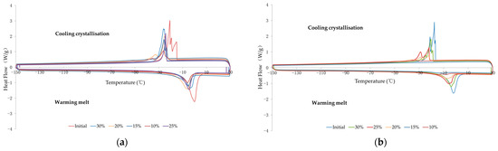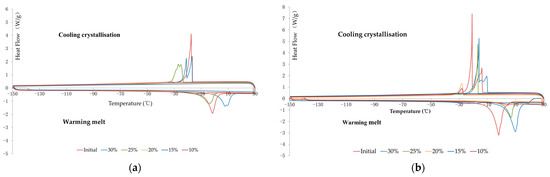 | Cooling Crystallization | Warming Melt | Average Enthalpy (Jg-1dw) | Cooling Crystallization | Warming Melt | Average Enthalpy (Jg-1dw) | ||
