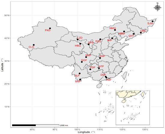 | CBF | Changbai Mountain Research Station of Forest Ecosystems | 128.1067 | 42.3989 |