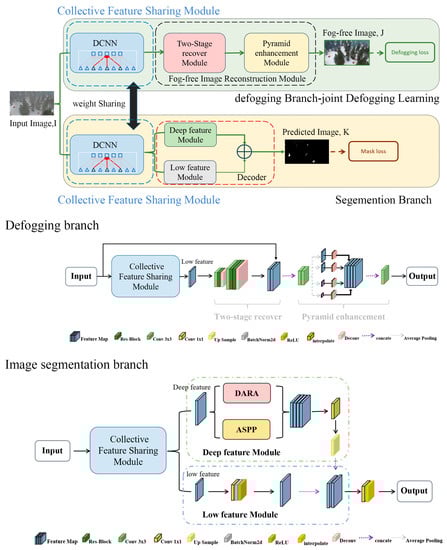 We estimated the model size and inference time of our proposed framework in addition to analyzing the segmentation performance of the comparable approaches. Compared to the original DeepLabV3+ model, our improved model (Defog DeepLabV3+) is slightly larger in terms of the total number of parameters, with an increase of about 46%. This increase is mainly due to the addition of a new defogging branch in our model.