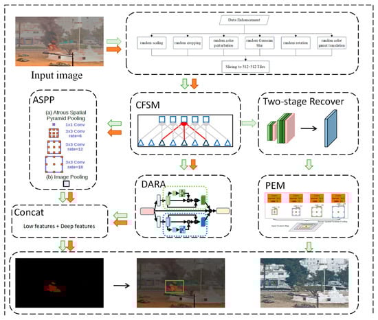 To prove the superior performance of the Defog DeepLabV3+ model for forest fire segmentation, we compared our model with many cutting-edge deep-learning-based models, such as UNet, PSPNet [