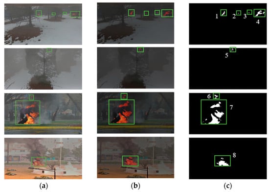 Figure 9c, we observe that our model can accurately capture small, hidden small flames, such as flame areas 2, 3, 5 and 6. The flame edge segmentation is also very detailed, such as flame areas 1, 4, 7 and 8.