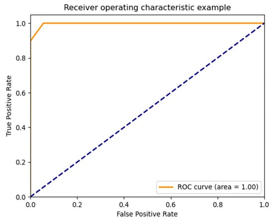Figure 13, with the AUC calculated as 0.97 (±0.015) according to the curve. The model performs well with strong classification ability.