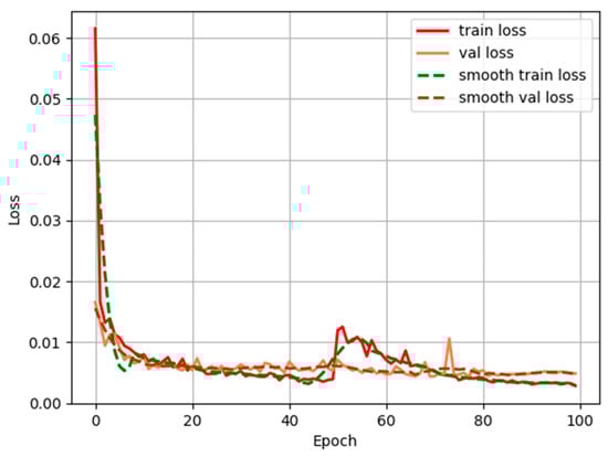Figure 14 shows the loss curves of our model during training for 100 epochs on the training and validation sets. It reflects that in model 1, the performance of the test set and the training set change with iterations. The overall smooth and downward trend, and gradually converge after about 80 epochs. This demonstrates how well our model can gradually improve the segmentation results by learning the properties of the input image.