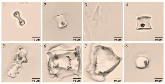 - Bozarth, S.R. Classification of opal phytoliths formed in selected dicotyledons native to the Great Plains. In Phytolith Systematics: Emerging Issues; Springer: Berlin/Heidelberg, Germany, 1992; pp. 193–214. [Google Scholar] [CrossRef]