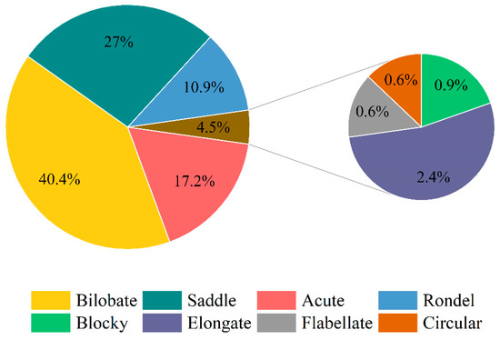 The bilobate phytolith had the highest frequency (40.4%) and varied in the order of grafted seedlings > seed-cultured seedlings > tissue-cultured seedlings (Figure 4 and Figure 5). The grafted seedling leaves had a significantly higher bilobate phytolith percentage than the other two seedling types. With the leaf maturing, bilobate phytoliths demonstrated an increasing trend, and their proportion in mature leaves was higher than that in young leaves. Specifically, bilobate phytoliths increased sharply in tissue-cultured seedling leaves and their proportion became greater than that in seed-cultured seedlings (Table 2).