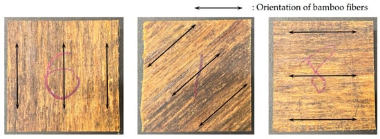 Recombinant bamboo with three different fiber orientations; the left side of the recombinant bamboo in the figure shows the surface to be milled.