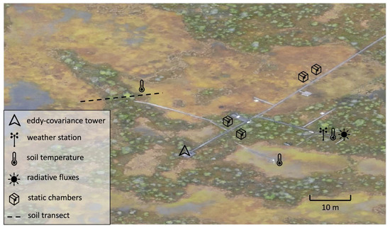 In addition to the local AWS, for the period of the campaign, one more AWS (WXT520, Vaisala, Vantaa, Finland) was installed at 2 m height, surrounded mainly by waterlogged hollows (