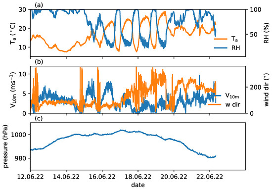 Figure 1). It provided air temperature and humidity, atmospheric pressure, wind speed, and direction observations with a logging frequency of 1 min.