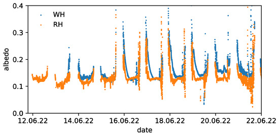 A much larger discrepancy between the results of the two methods is found over the RH site (