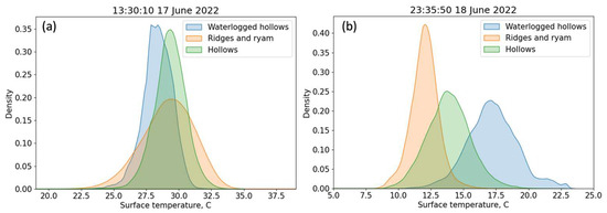 38]. However, the latter study quantified only monthly mean surface temperature differences between hummocks and hollows based on thermal images from a camera fixed at a 9 m height.