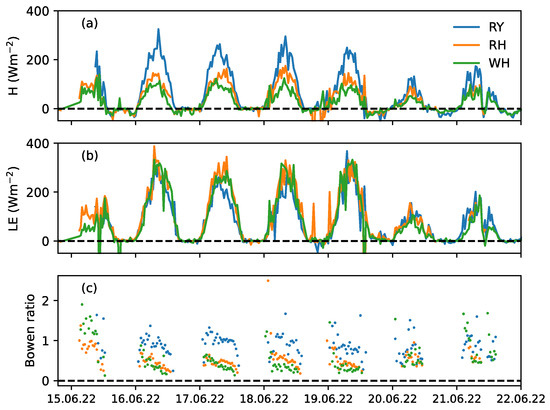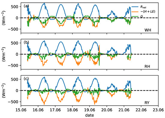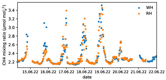 −2 on 16, 17, and 18 June, respectively, at the WH and RH sites based on the eddy-covariance method.