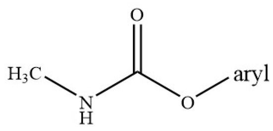 Carbamates are N-methyl esters derived from carbamic acid (NH2COOH) (Figure 7). The first compounds with significant pest control capacity were synthesized in 1954. N-alkylcarbamic acid esters exhibit the strongest insecticidal properties.