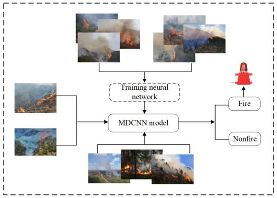 - A forest fire recognition model was developed using a modified CNN network, resulting in a highly accurate fire video image recognition model after extensive training. The model’s accuracy and generalization capabilities were assessed using a diverse set of fire and non-fire scenarios.