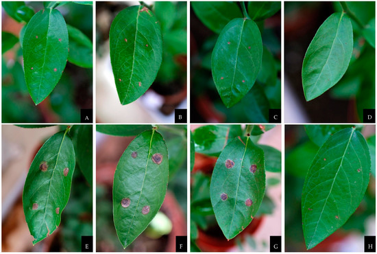 - Xu, C.N.; Zhou, Z.S.; Wu, Y.X.; Chi, F.M.; Ji, Z.R.; Zhang, H.J. First Report of Stem and Leaf Anthracnose on Blueberry Caused by Colletotrichum gloeosporioides in China. Plant Dis. 2013, 97, 845. [Google Scholar] [CrossRef]