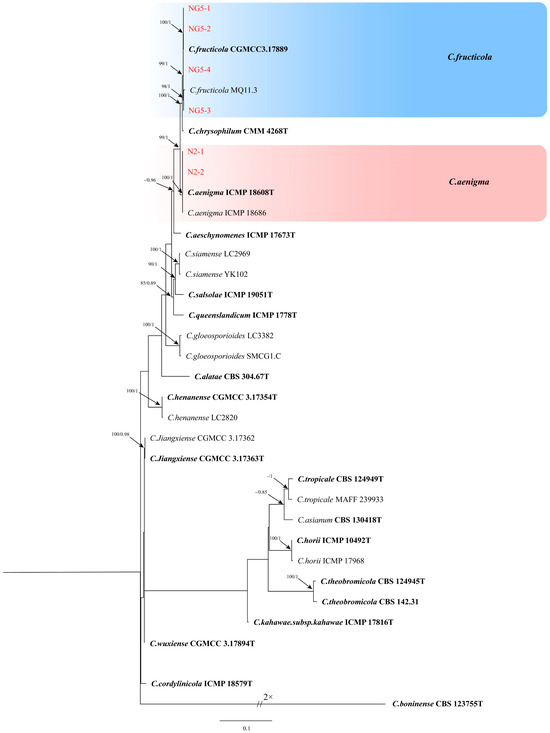 - Chen, Y.; Fu, D.; Wang, W.; Gleason, M.L.; Zhang, R.; Liang, X.; Sun, G. Diversity of Colletotrichum Species Causing Apple Bitter Rot and Glomerella Leaf Spot in China. J. Fungi 2022, 8, 740. [Google Scholar] [CrossRef] [PubMed]
