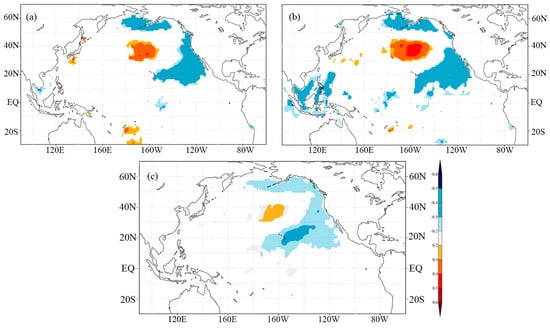 The spatial correlation between the HadISST (Hadley Centre Sea Ice and Sea Surface Temperature) grid data 39] and the observed precipitation as well as the reconstructed precipitation showed that SST in the North Pacific had some impact on precipitation change in the YMMs. Not only was the correlation pattern between the observed precipitation and SST similar to that between of the reconstructed precipitation and SST for 1960–2016, but the correlation between the reconstructed precipitation and SST was also significant for 1896–2019. The significant correlation in the North Pacific (Figure 9) indicates that the PDO (Pacific decadal oscillation) was a major influencing factor of precipitation changes in the YMMs. Therefore, we further analyzed the relationship between the reconstructed precipitation and the PDO.