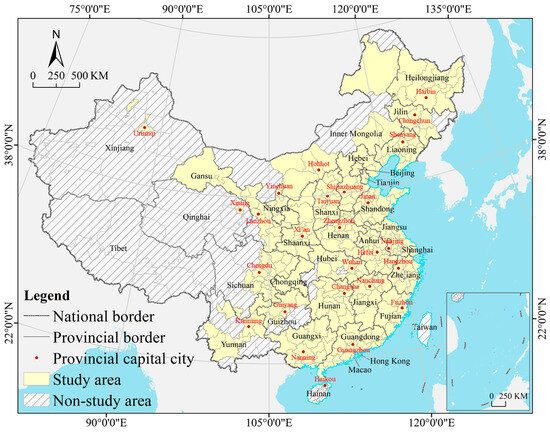 This paper selected 286 cities in mainland China as the study area, located in 30 provinces (autonomous regions and municipalities directly under the central government), with exclusion of Tibet due to the shortage of data, as well as Hong Kong, Macao, and Taiwan due to inconsistencies in their statistical systems (Figure 1). This paper sets 2010–2020 as the study period considering two reasons. First, the report of the 18th National Congress of China in 2012 set up the general outline of “ecological civilization construction”, and subsequently the relevant plans were developed across China based on it to promote urban greening construction. Second, the span of the period coincides with the two policy periods of “Twelfth Five-Year Plan” and “Thirteenth Five-Year Plan”, which ensures the reliability of the conclusions to a greater extent with the development policies in the corresponding period staying relatively stable.