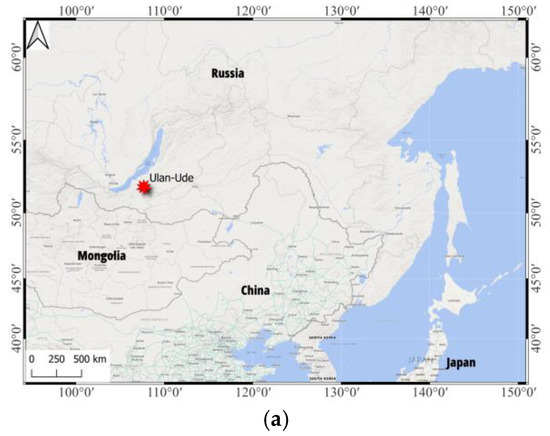 The same area was used as a reforestation test site as in [16]. The test site is a typical area of Siberian boreal forests located in Russia, not far (82 km) from the Baikal Lake, a UNESCO World Heritage area, near the city of Ulan-Ude (107.64° N, 51.90° E). The terrain is mountainous, with 680–800 m elevations and slopes up to 30°. In 2003, a strong wildfire completely destroyed 69 ha of forest. After the forest fire, pine seedlings (Pínus sylvéstris) were planted in the lowlands and on smooth slopes. Natural reforestation takes place in the remaining territory.