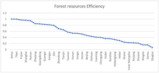 Forest resource efficiency in 31 Chinese provinces (2001–2020).