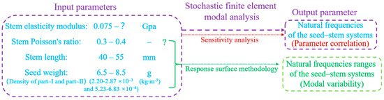 - Santos, F.L.; Scinocca, F.; de Siqueira Marques, D.; Velloso, N.S.; de Melo Villar, F.M. Modal properties of macaw palm fruit-rachilla system: An approach by the stochastic finite element method (SFEM). Comput. Electron. Agric. 2021, 184, 106099. [Google Scholar] [CrossRef]
