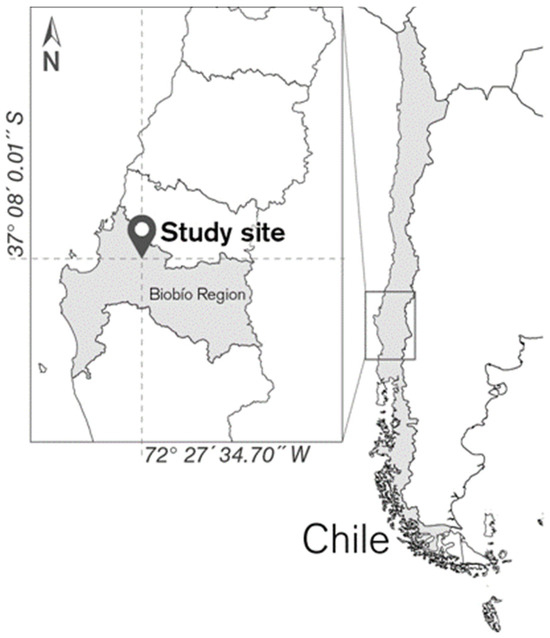 The experiment was established in 2013 in the forestry nursery “Carlos Douglas”, which belongs to the company Forestal Mininco S.A., located 9.6 Km south of Yumbel, Biobío region, central south Chile (37°8′0.01″ S, 72°27′34.70″ W) (Figure 1).