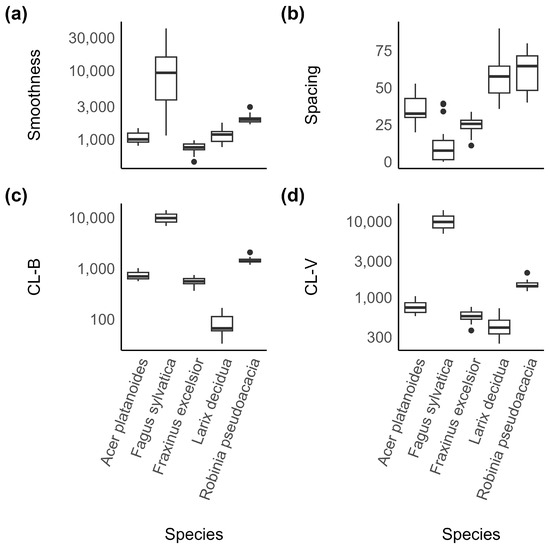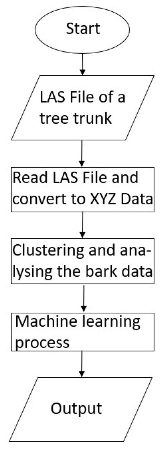 - Othmani, A.A.; Jiang, C.; Lomenie, N.; Favreau, J.-M.; Piboule, A.; Voon, L.F.C.L.Y. A Novel Computer-Aided Tree Species Identification Method Based on Burst Wind Segmentation of 3D Bark Textures. Mach. Vis. Appl. 2016, 27, 751–766. [Google Scholar] [CrossRef]