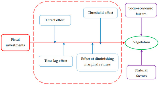 In this paper, we applied a panel fixed model and a panel threshold model to detect the ecological effects of fiscal investments in SLCP on vegetation (Table 4). The panel fixed effect model was used to study the direct effect, time lag effect, and diminishing marginal returns effect of fiscal investments, as shown in model (1), model (2), and model (3), respectively. The panel threshold model was applied to study the threshold effect of fiscal investments in SLCP and determine the investment priority areas of SLCP in model (4).