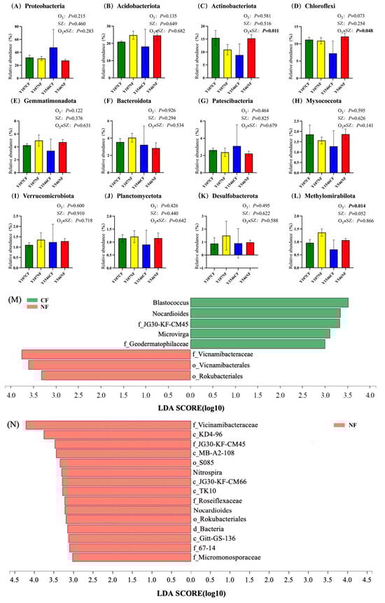 - Wang, Q.; Li, Z.; Li, X.; Ping, Q.; Yuan, X.; Agathokleous, E.; Feng, Z. Interactive effects of ozone exposure and nitrogen addition on the rhizosphere bacterial community of poplar saplings. Sci. Total Environ. 2021, 754, 142134. [Google Scholar] [CrossRef] [PubMed]