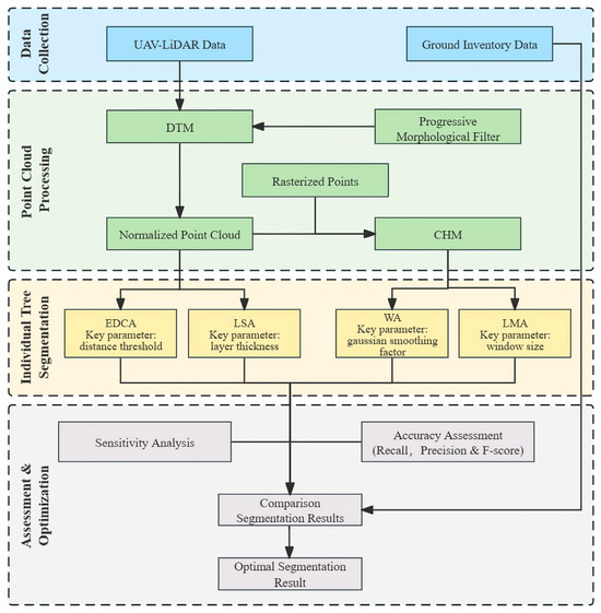 - Ma, K.; Chen, Z.; Fu, L.; Tian, W.; Jiang, F.; Yi, J.; Du, Z.; Sun, H. Performance and sensitivity of individual tree segmentation methods for UAV-LiDAR in multiple forest types. Remote Sens. 2022, 14, 298. [Google Scholar] [CrossRef]