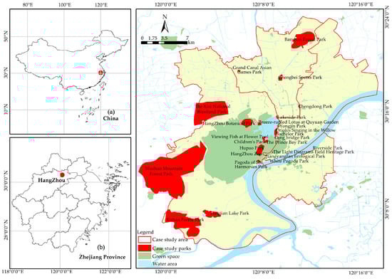 Hangzhou (E118°20′–120°37′, N29°11′–30°34′) is located in the Yangtze River Delta, serving as the economic, cultural, and educational center of Zhejiang Province. It is a significant scenic tourist city with rich ecological and cultural resources. Throughout history, the interaction and coexistence of the three major landscape factors (mountains, lakes, and cities) have shaped the long-term relationship between human habitation and the natural environment. The construction of urban parks in Hangzhou has left behind a wealth of perceptual information about the harmonious coexistence of humans and nature. Furthermore, Hangzhou has been a pioneer in constructing urban parks in China. Using Hangzhou as an example, the results of this study have implications that can be valuable for other cities in China and even globally [38].