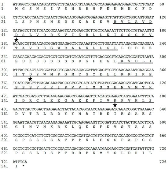 Nucleotides and amino acids of SmRR5. The underlined residues represent the conserved receiver domain. ★ indicates three invariant residues ‘DDK’ among all type A RRs.
