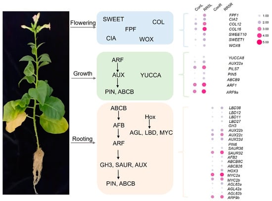 Expression pattern and regulation of DEGs related to plant growth and development in SmRR5-overexpressing tobacco plants.