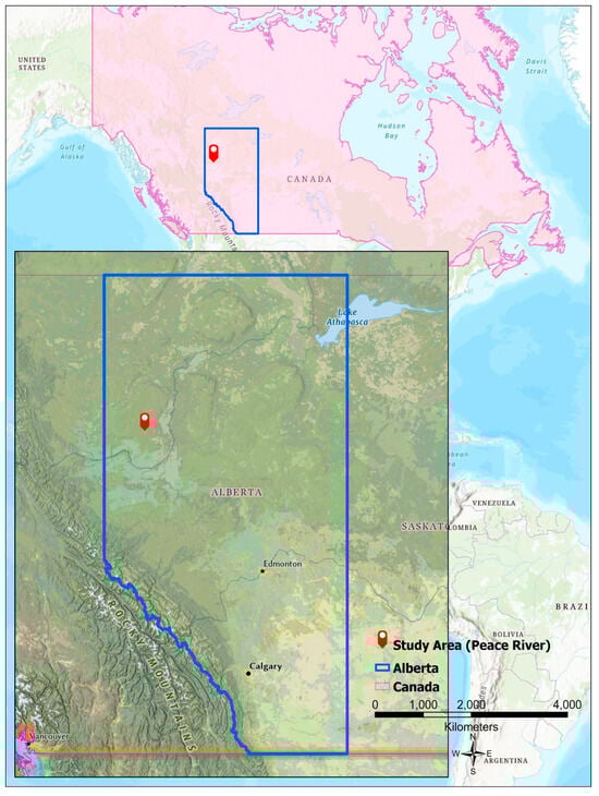 In the Peace River Environmental Monitoring Super Site (PR-EMSS), a rectangular study plot measuring 50 m × 50 m was established within a Trembling Aspen (Populus tremuloides) forest stand characterized by a broad leaf deciduous canopy. The survey was conducted between August and October of 2014 in an undulating terrain situated at latitude 56°44′39″ North and longitude −118°20′40″ West, with an elevation of 871 m (Figure 1). For all trees within the plot, both the tree height and diameter at breast height (DBH) were collected utilizing a TruPulse 200 laser rangefinder and a measuring tape.