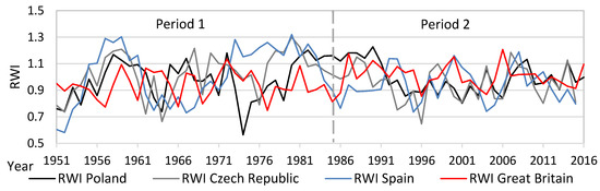 | RWI Czech Republic | Period 1/1951–1985 | −0.29 | −0.01 | 0.40 | 0.38 |