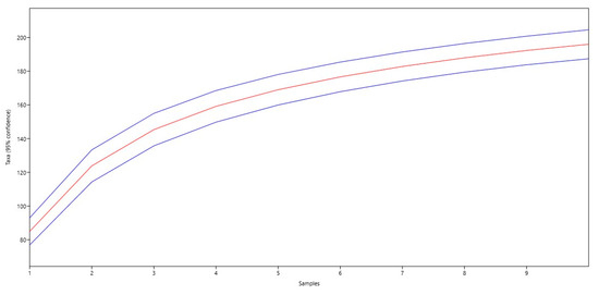 The increase in species richness is observed in the steady rise in species (Taxa) with increasing sample number. The maximum number of species is observed in the 10th sample (196 species). The standard error (Std. err) varies from 4.0966 to 4.9139. The highest error is observed in the 3rd sample (4.9139) and the lowest is observed in the 1st sample (4.0966). The analysis shows that the number of species steadily increases with increasing sample number. The standard error remains relatively low, indicating the stability of the data (Figure 3).