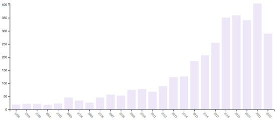 Number of papers on natural capital, ecosystem services and woodland detected by the search in the Web of Science (1998–2022).