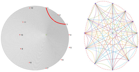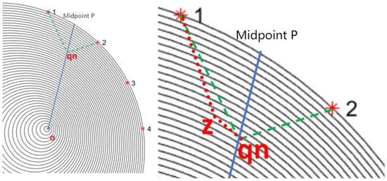 After determining the position of qn, further determination of the propagation path of the stress wave is needed. Look for the shortest propagation time path from z to qn and z to pi at some point on the outward layer, and then determine the point z on the outward layer as the starting point. Next, find such points on each layer, and finally form the approximate path of the fastest stress wave propagation (as shown in Figure 8 and Figure 9).