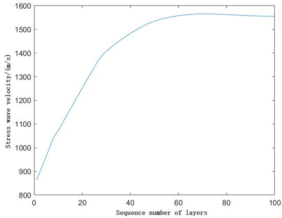 In this study, an iterative method is employed to determine the shortest stress wave propagation path within the log cross-section. Initially, the fastest stress wave in the log is used, and a stress wave velocity curve is preset for each ring layer inside the cross-section (as shown in Figure 5).