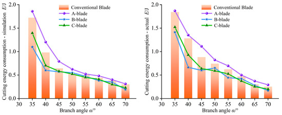 Effect of branch angles on cutting energy consumption.