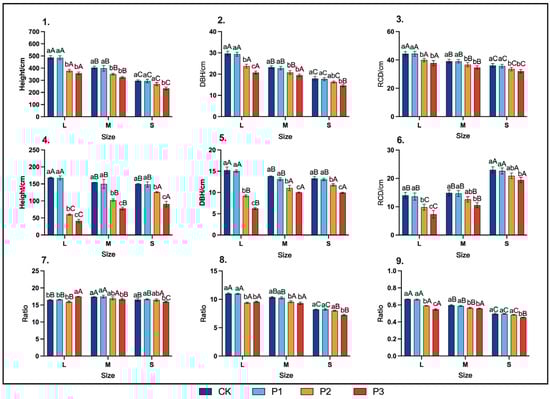 | Size/Index | H (cm) | DBH (mm) | RCD (mm) | H/DBH | H/RCD |