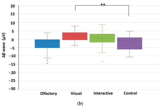 | O | β waves (µV) | 11.42 | 6.06 | 8.47 | 5.10 | 2.954 ** |