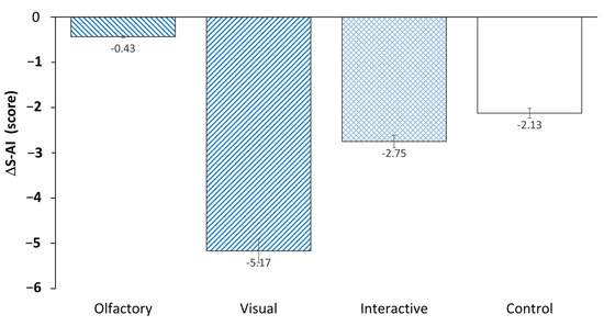 4.4. Investigation into the Impact of Olfactory, Visual, and Their Interactions on Psychometric Measures
