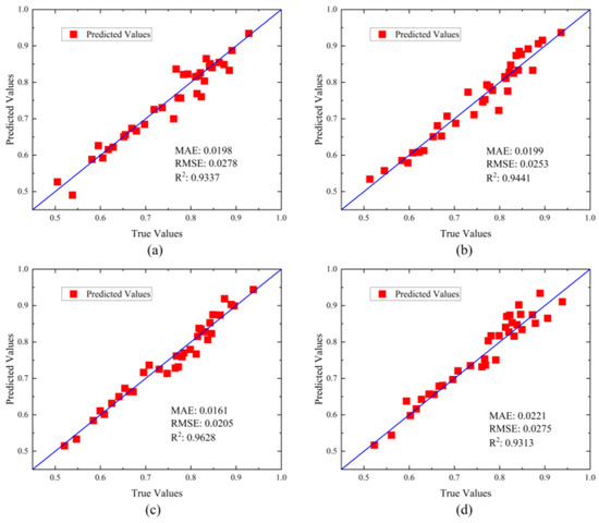 Different types of leaves exhibit variations in certain features, such as leaf thickness and leaf density. To verify the reliability of the LMC detection system proposed in this paper, we classified the collected leaf samples into different categories and conducted separate experiments on each category. The experimental results are shown in Figure 12. The system has good prediction results when facing different types of leaves, proving that the prediction model has strong generalization ability and good robustness.