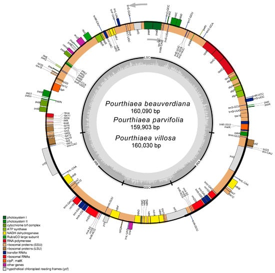 Chicago/Turabian StyleRen, Ting, Chang Peng, Yuan Lu, Yun Jia, and Bin Li. 2024. "Conserved Plastid Genomes of Pourthiaea Trees: Comparative Analyses and Phylogenetic Relationship" Forests 15, no. 10: 1811. https://doi.org/10.3390/f15101811