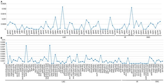 - Abdullah; Mehmood, F.; Shahzadi, I.; Ali, Z.; Islam, M.; Naeem, M.; Mirza, B.; Lockhart, P.J.; Ahmed, I.; Waheed, M.T. Correlations among oligonucleotide repeats, nucleotide substitutions, and insertion-deletion mutations in chloroplast genomes of plant family Malvaceae. J. Syst. Evol. 2021, 59, 388–402. [Google Scholar] [CrossRef]