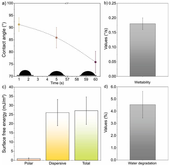 The surface free energy was obtained according to the methodology presented by Mascarenhas [50] using the same equipment to obtain the contact angle.