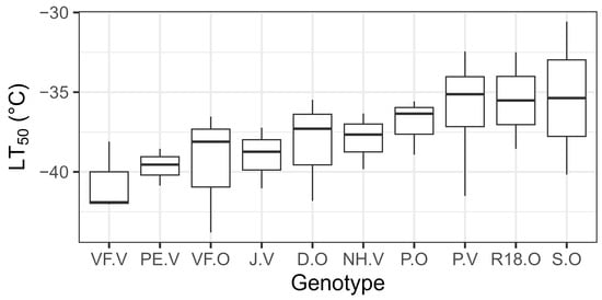 36]. In the present study, only genotype ‘Jefferson’ was a known triploid, while the other commercial genotypes were tetraploids. There was no obvious trend in LT